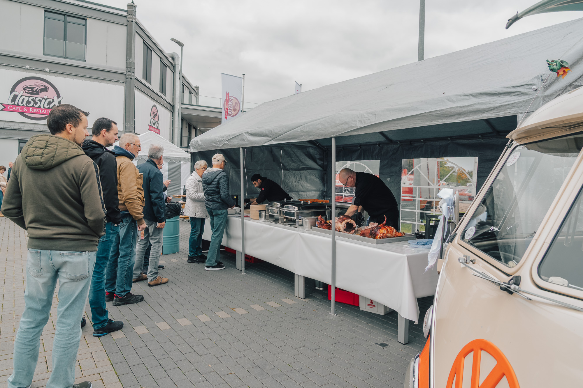 Am Sonntag, den 12.10.2025 fand im Classicbid Zentrum in Grolsheim das diesjährige Saisonfinale statt. Großen Andrang gab es sowohl in den eigenen Ausstellungshallen, als auch auf dem komplett belegten Parkplatzgelände rund um das Zentrum. Fahrzeuge einer Auswahl an Baujahren und -arten waren zu bewundern. Als kulinarischen Höhepunkt gab es in diesem Jahr Spanferkel vom Spieß.